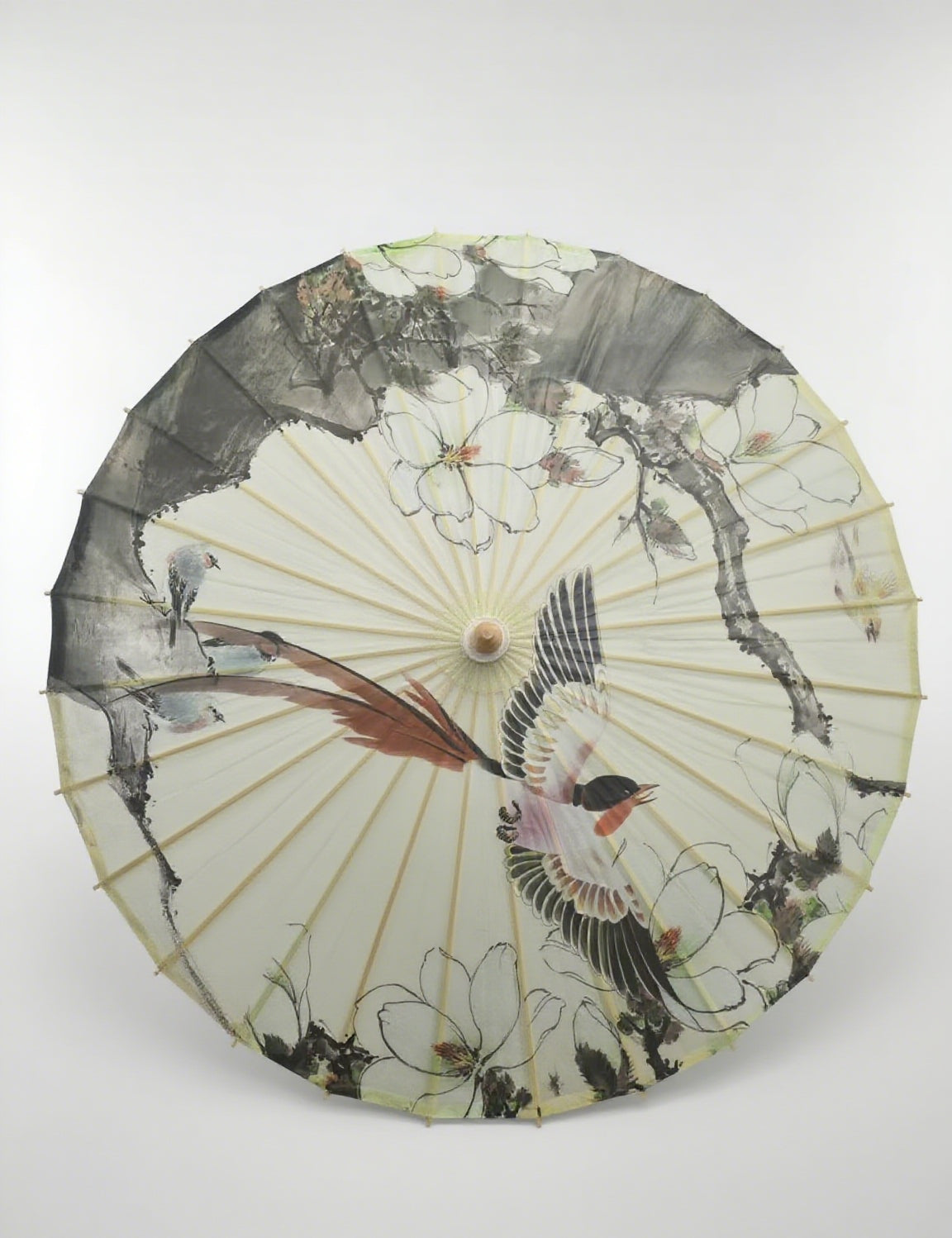 油纸伞以传统工艺手工制作,伞面采用优质棉纸,印有雅致粉白樱花图案,搭配粉色流苏装饰,尽显古典韵味。伞骨为坚韧竹材,伞柄圆润光滑,开合顺畅。